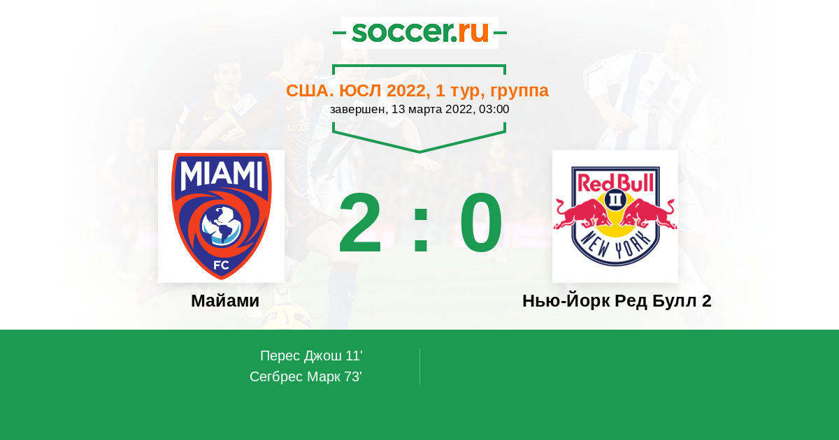 Майами - Нью-Йорк Ред Булл 2: обзор матча 13 марта 2022