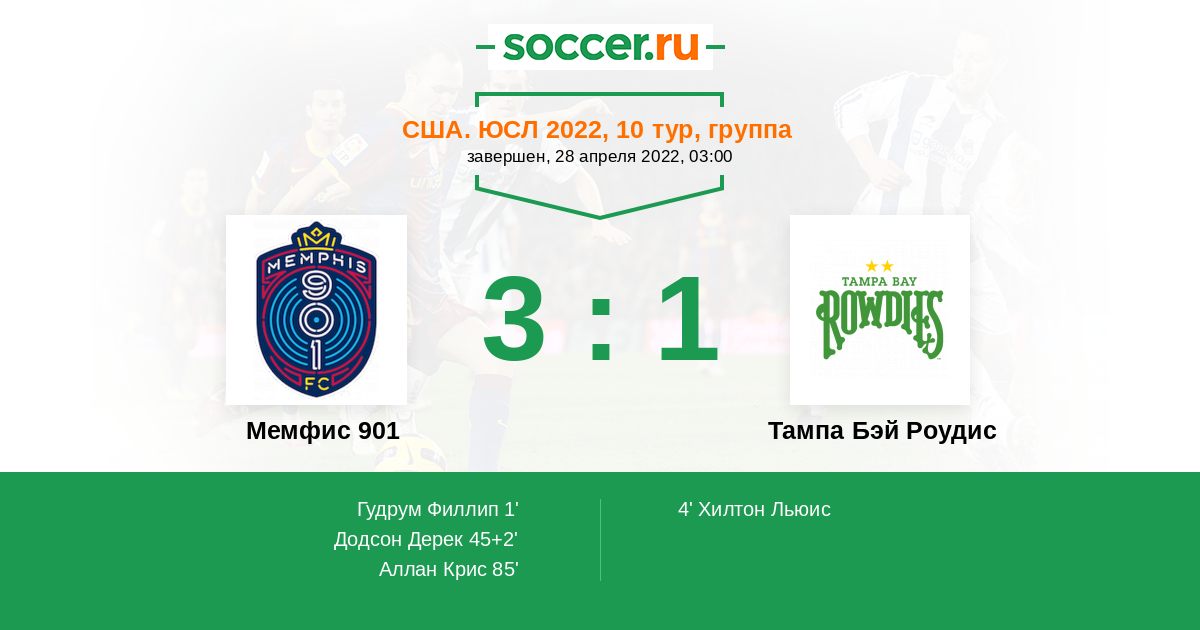 Мемфис 901 - Тампа Бэй Роудис: обзор матча 28 апреля 2022