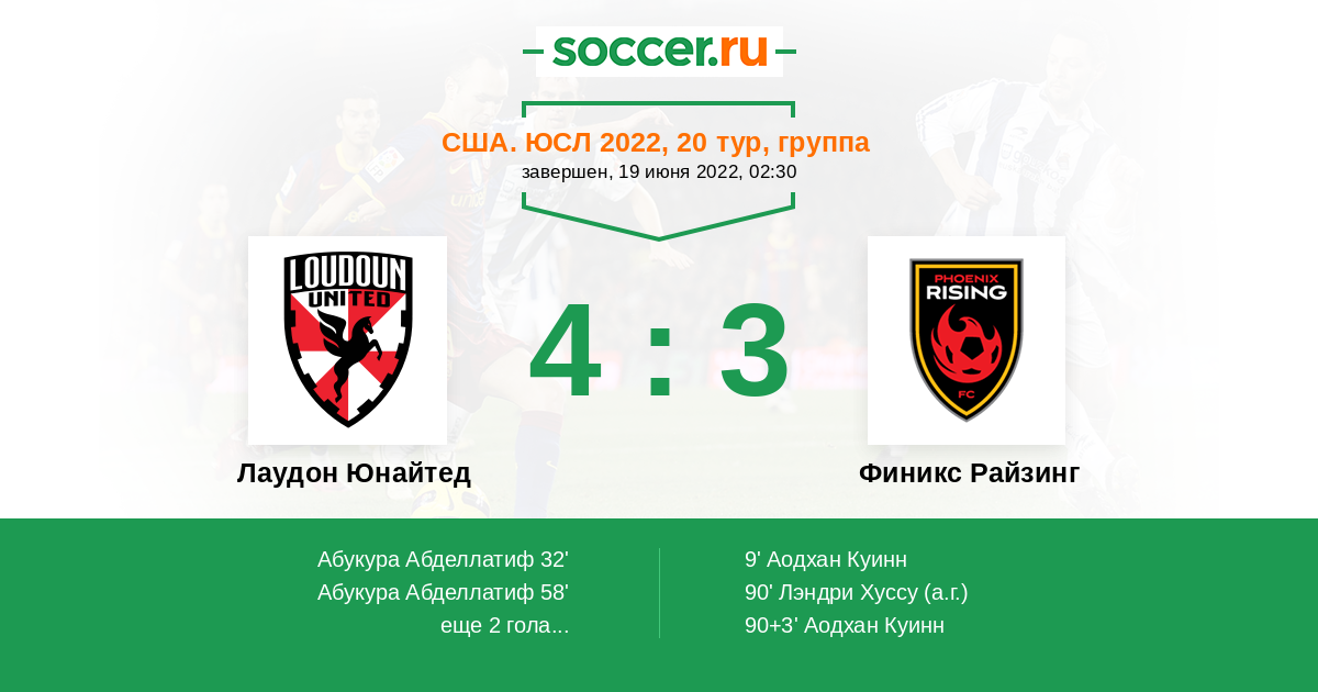 Лаудон Юнайтед - Финикс Райзинг: обзор матча 19 июня 2022