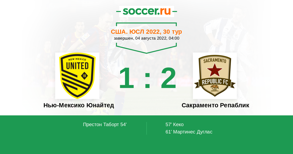 Нью-Мексико Юнайтед - Сакраменто Репаблик: обзор матча 4 августа 2022