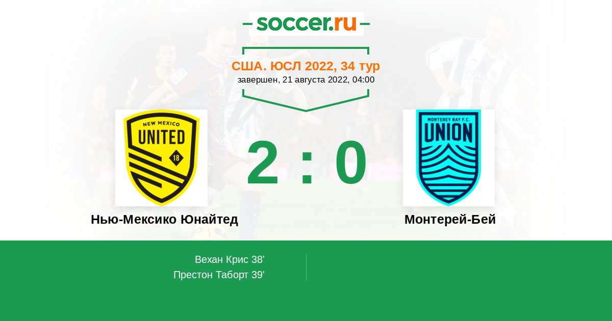Нью-Мексико Юнайтед - Монтерей-Бей: обзор матча 21 августа 2022