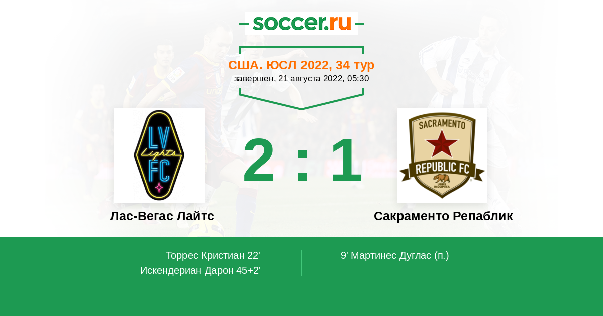Лас-Вегас Лайтс - Сакраменто Репаблик: обзор матча 21 августа 2022