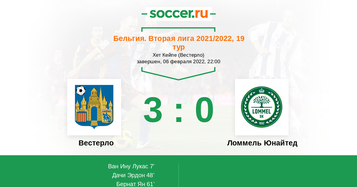 Вестерло - Ломмель Юнайтед: обзор матча 6 февраля 2022