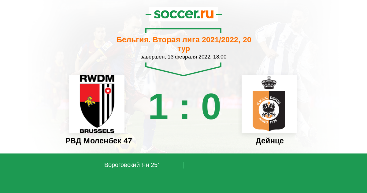 РВД Моленбек 47 - Дейнце: обзор матча 13 февраля 2022