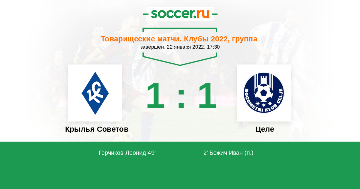 Крылья Советов - Целе: обзор матча 22 января 2022