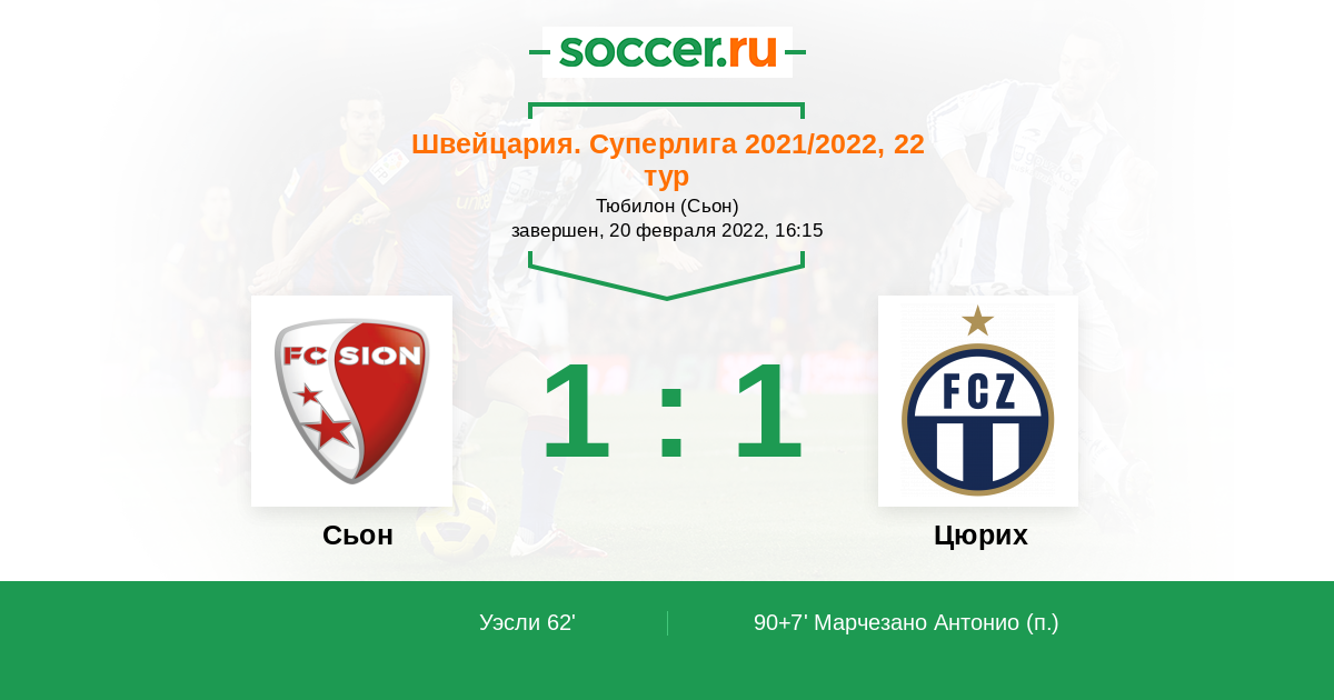 Сьон - Цюрих: обзор матча 20 февраля 2022