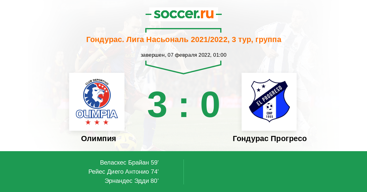 Олимпия - Гондурас Прогресо: обзор матча 7 февраля 2022