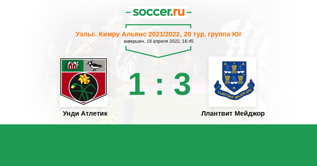Унди Атлетик - Ллантвит Мейджор: обзор матча 18 апреля 2022