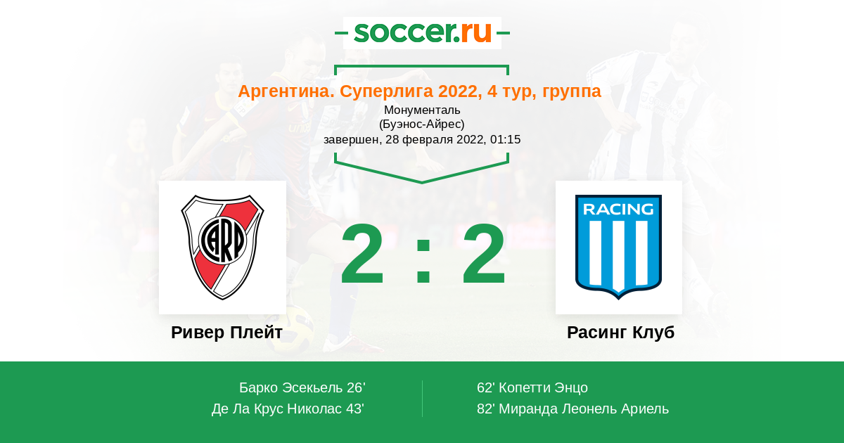 Ривер Плейт - Расинг Клуб: обзор матча 28 февраля 2022