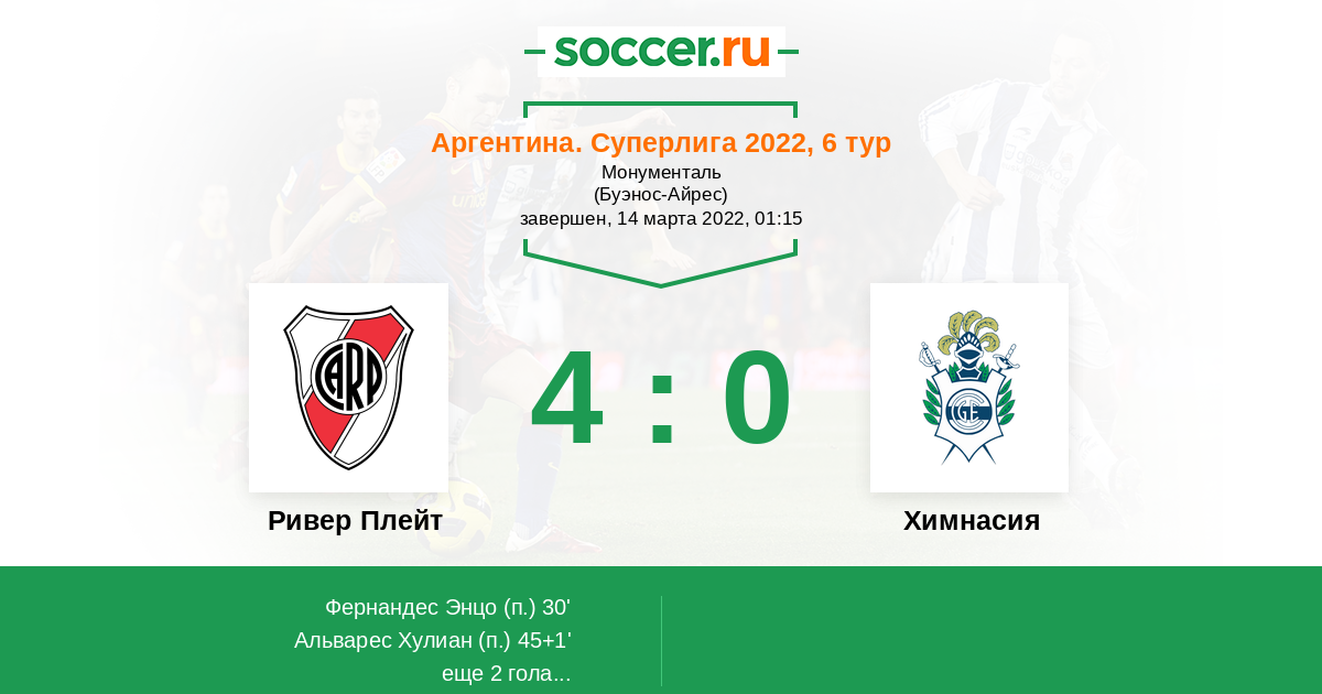 Ривер Плейт - Химнасия: обзор матча 14 марта 2022