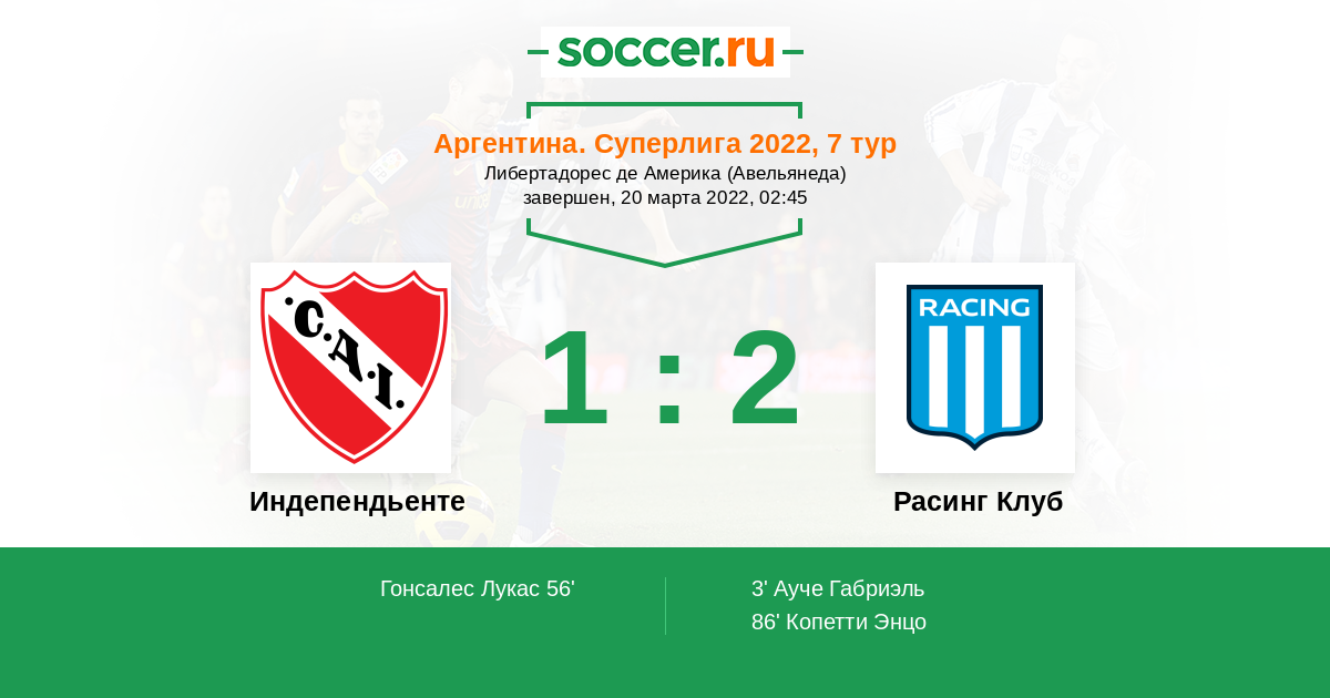 Индепендьенте - Расинг Клуб: обзор матча 20 марта 2022