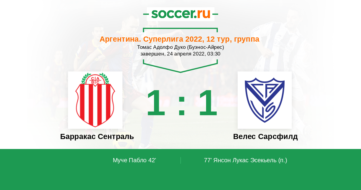 Барракас Сентраль - Велес Сарсфилд: обзор матча 24 апреля 2022