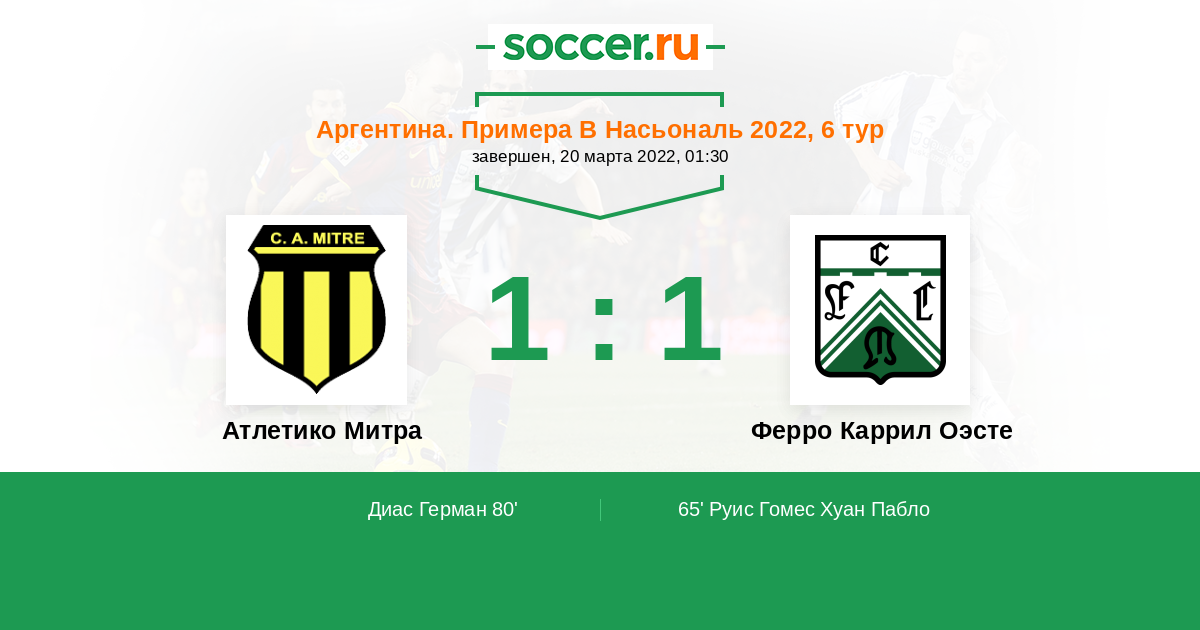 Атлетико Митра - Ферро Каррил Оэсте: обзор матча 20 марта 2022
