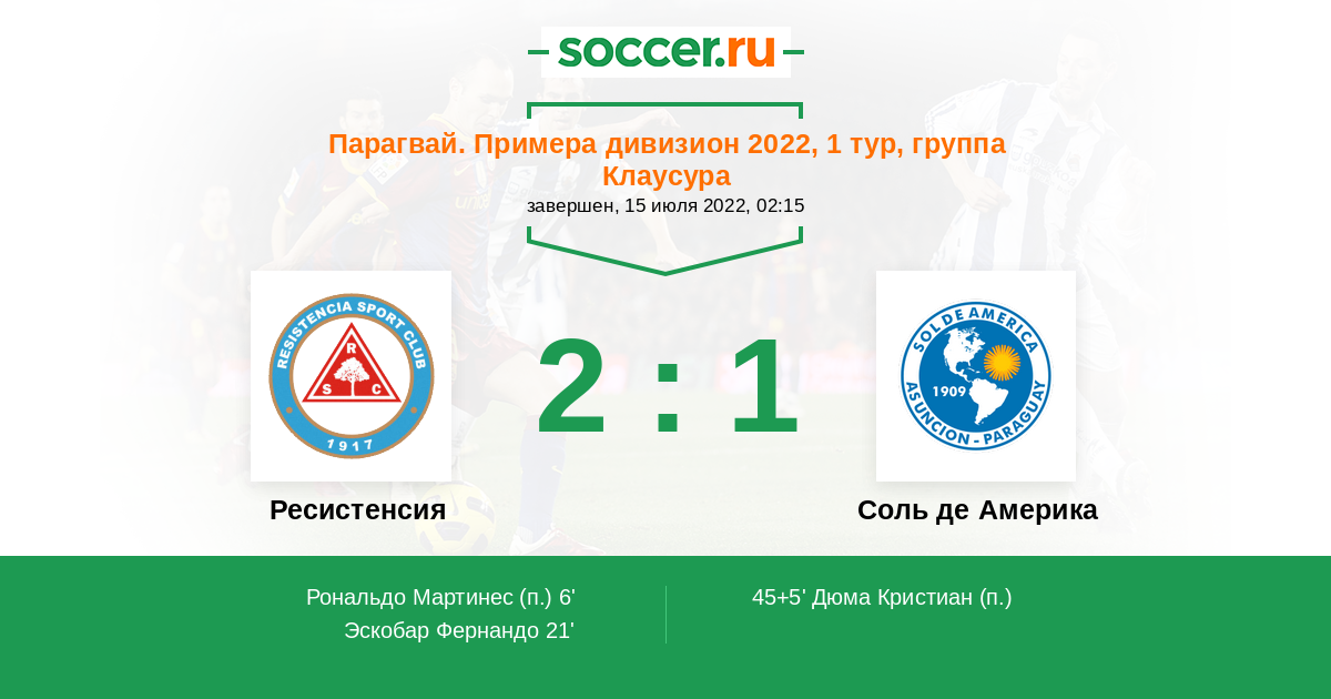Ресистенсия - Соль де Америка: обзор матча 15 июля 2022