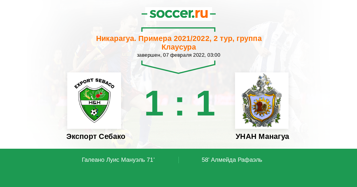 Экспорт Себако - УНАН Манагуа: обзор матча 7 февраля 2022