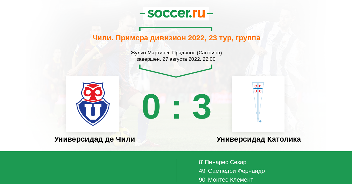 Универсидад де Чили - Универсидад Католика: обзор матча 27 августа 2022