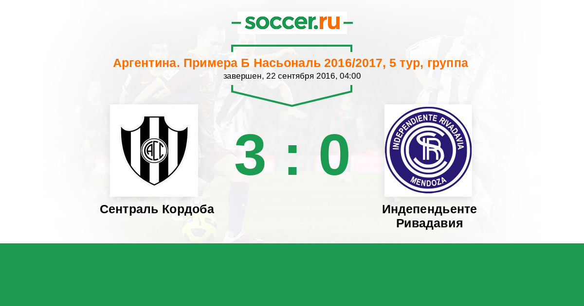 Сентраль Кордоба - Индепендьенте Ривадавия: обзор матча 22 сентября 2016