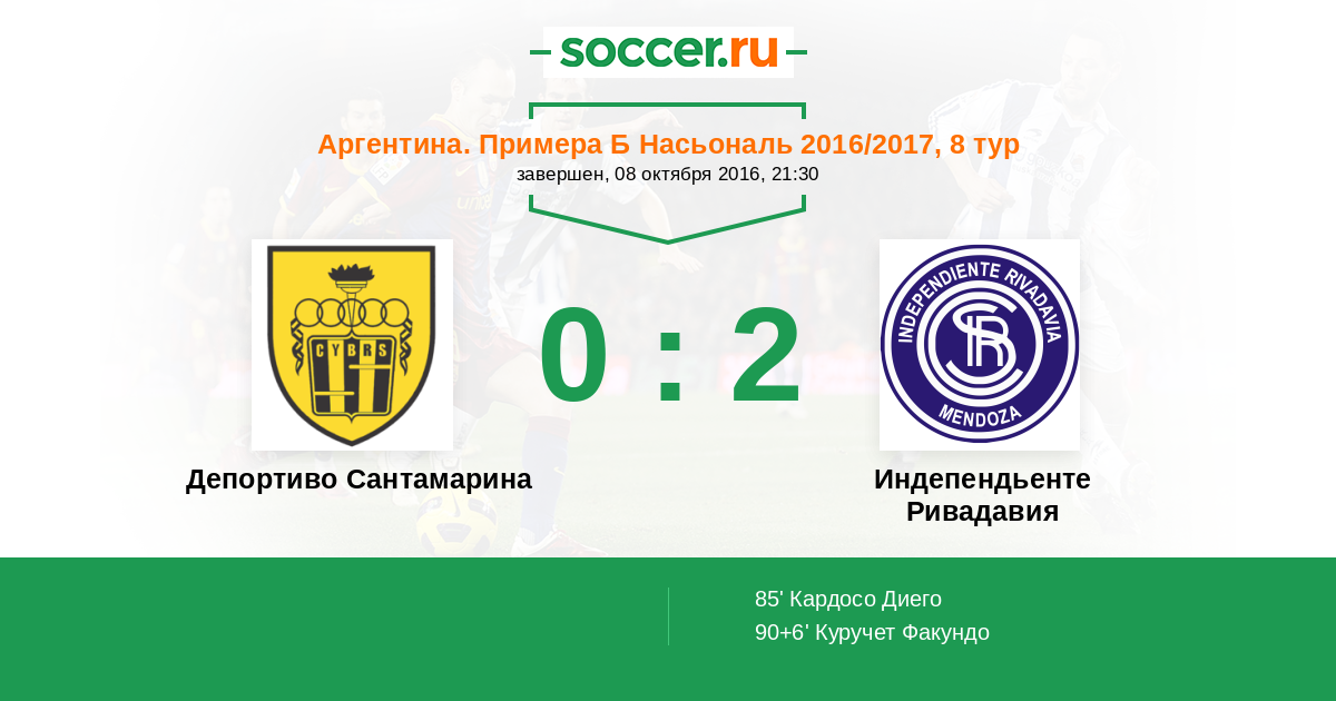 Депортиво Сантамарина - Индепендьенте Ривадавия: обзор матча 8 октября 2016