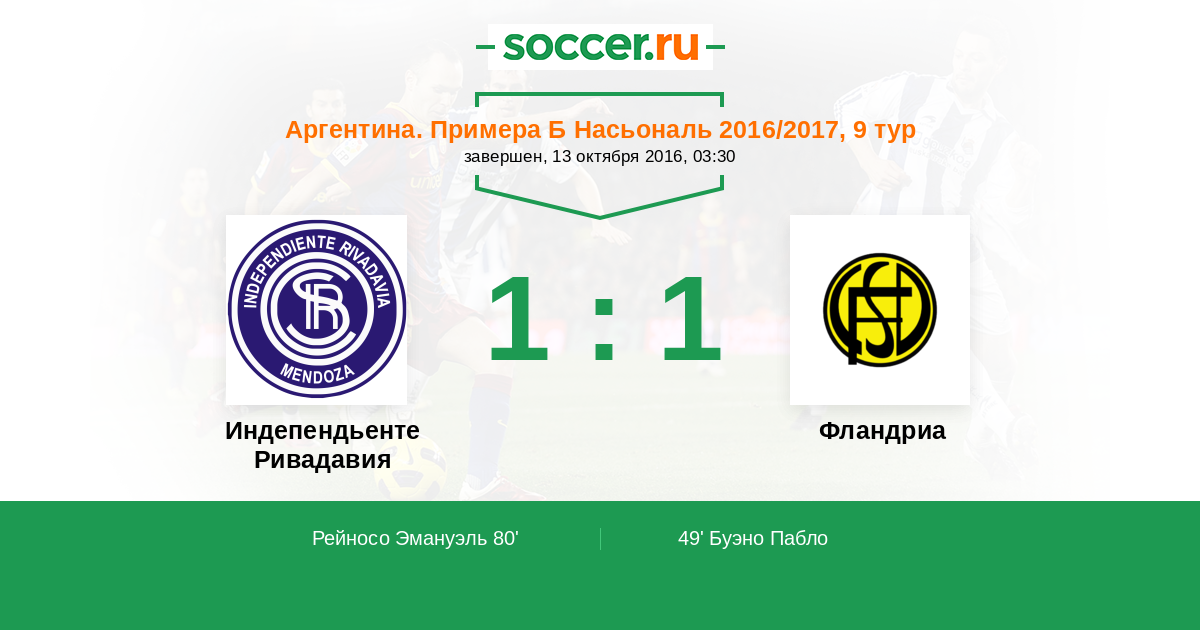 Индепендьенте Ривадавия - Фландриа: обзор матча 13 октября 2016