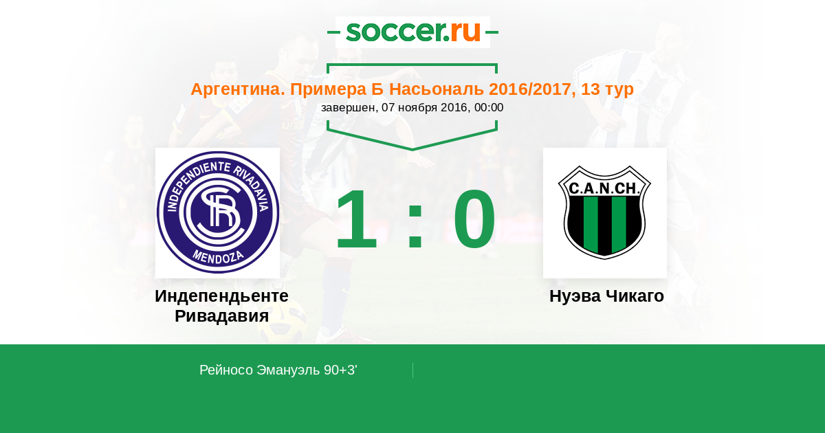 Индепендьенте Ривадавия - Нуэва Чикаго: обзор матча 7 ноября 2016