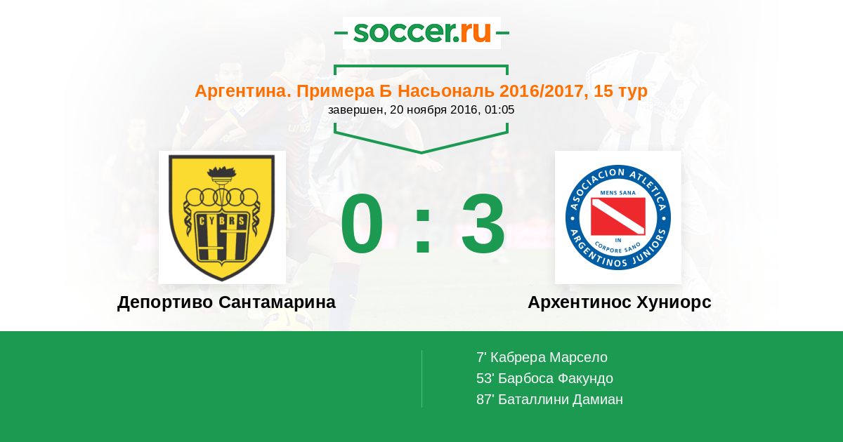 Депортиво Сантамарина - Архентинос Хуниорс: обзор матча 20 ноября 2016