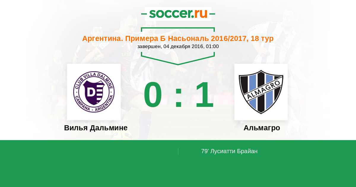 Вилья Дальмине - Альмагро: обзор матча 4 декабря 2016