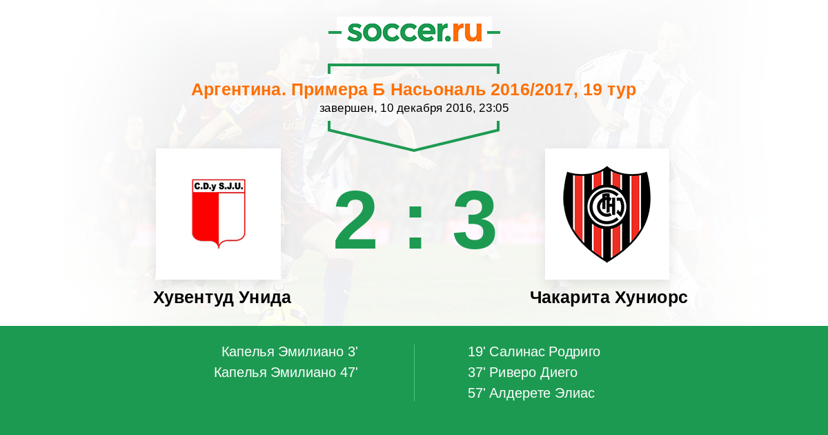 Хувентуд Унида - Чакарита Хуниорс: обзор матча 10 декабря 2016
