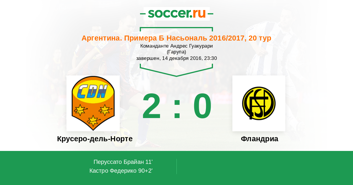 Крусеро-дель-Норте - Фландриа: обзор матча 14 декабря 2016