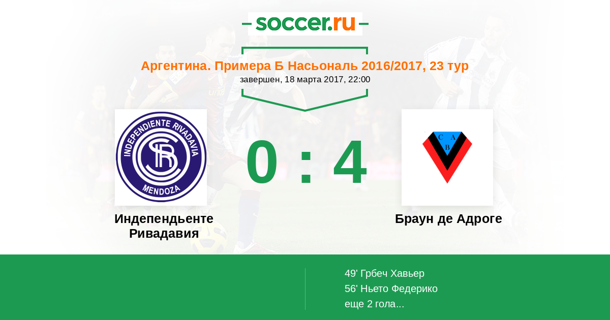 Индепендьенте Ривадавия - Браун де Адроге: обзор матча 18 марта 2017