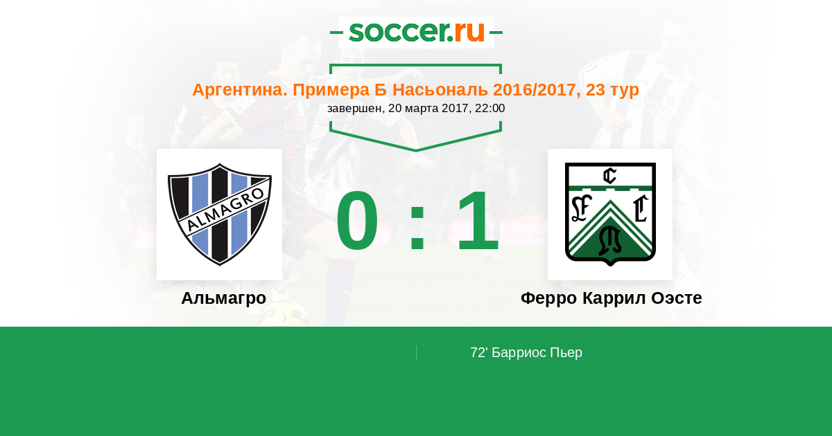 Альмагро - Ферро Каррил Оэсте: обзор матча 20 марта 2017