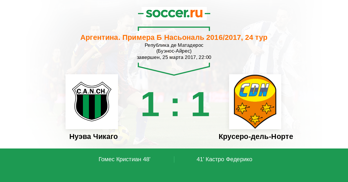 Нуэва Чикаго - Крусеро-дель-Норте: обзор матча 25 марта 2017