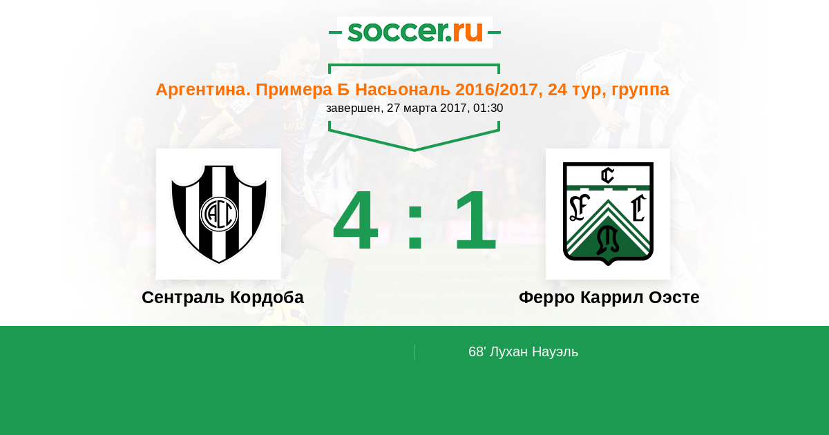 Сентраль Кордоба - Ферро Каррил Оэсте: обзор матча 27 марта 2017