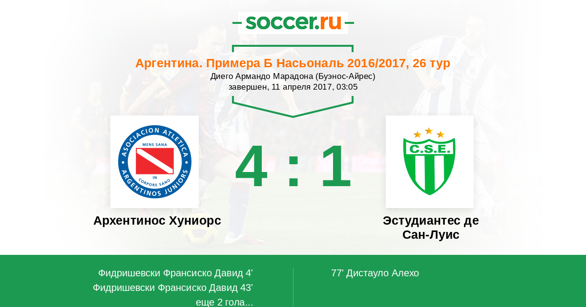Архентинос Хуниорс - Эстудиантес де Сан-Луис: обзор матча 11 апреля 2017