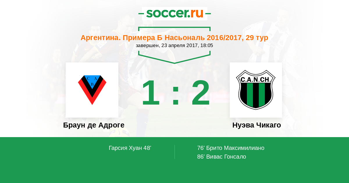 Браун де Адроге - Нуэва Чикаго: обзор матча 23 апреля 2017