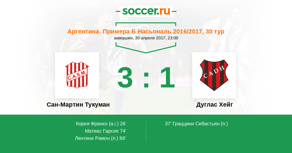 Сан-Мартин Тукуман - Дуглас Хейг: обзор матча 30 апреля 2017