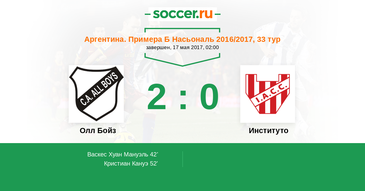 Олл Бойз - Институто: обзор матча 17 мая 2017
