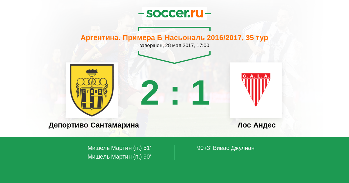 Депортиво Сантамарина - Лос Андес: обзор матча 28 мая 2017