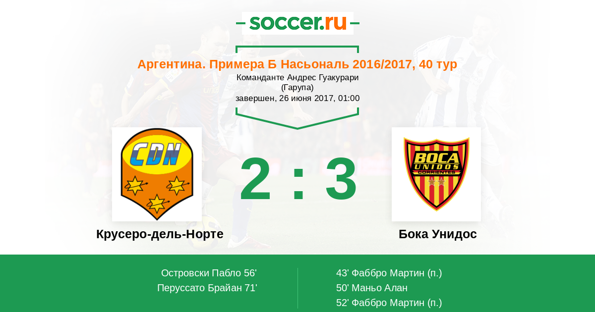 Крусеро-дель-Норте - Бока Унидос: обзор матча 26 июня 2017