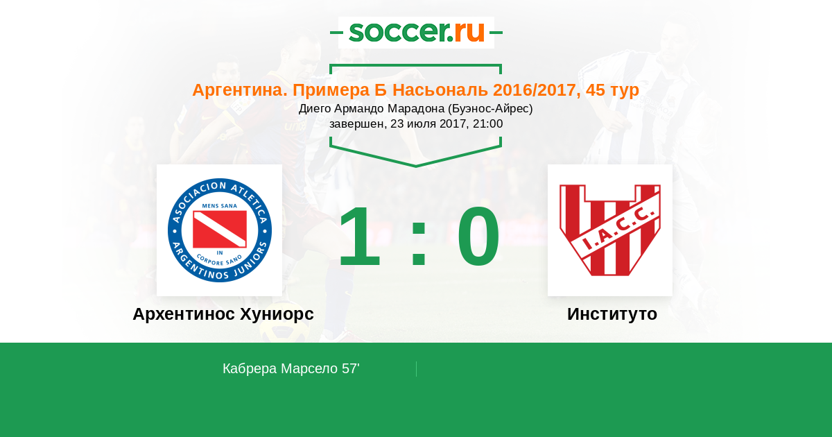 Архентинос Хуниорс - Институто: обзор матча 23 июля 2017