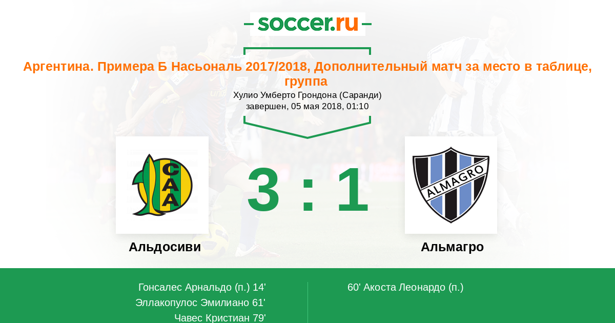 Альдосиви - Альмагро: обзор матча 5 мая 2018