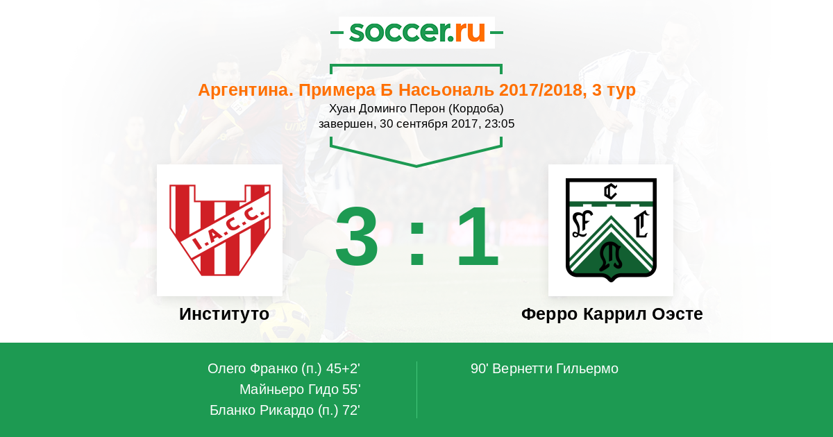 Институто - Ферро Каррил Оэсте: обзор матча 30 сентября 2017