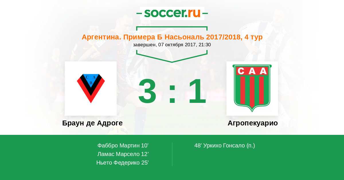 Браун де Адроге - Агропекуарио: обзор матча 7 октября 2017