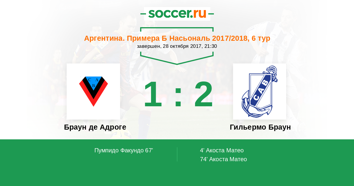 Браун де Адроге - Гильермо Браун: обзор матча 28 октября 2017