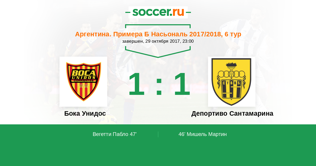Бока Унидос - Депортиво Сантамарина: обзор матча 29 октября 2017