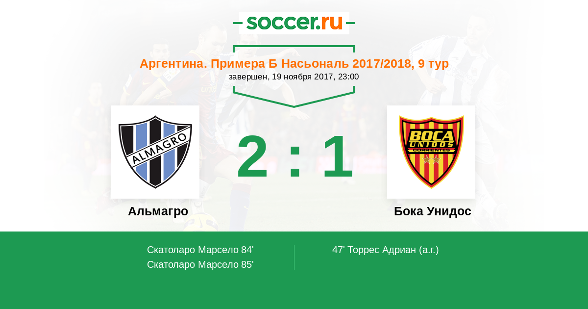 Альмагро - Бока Унидос: обзор матча 19 ноября 2017