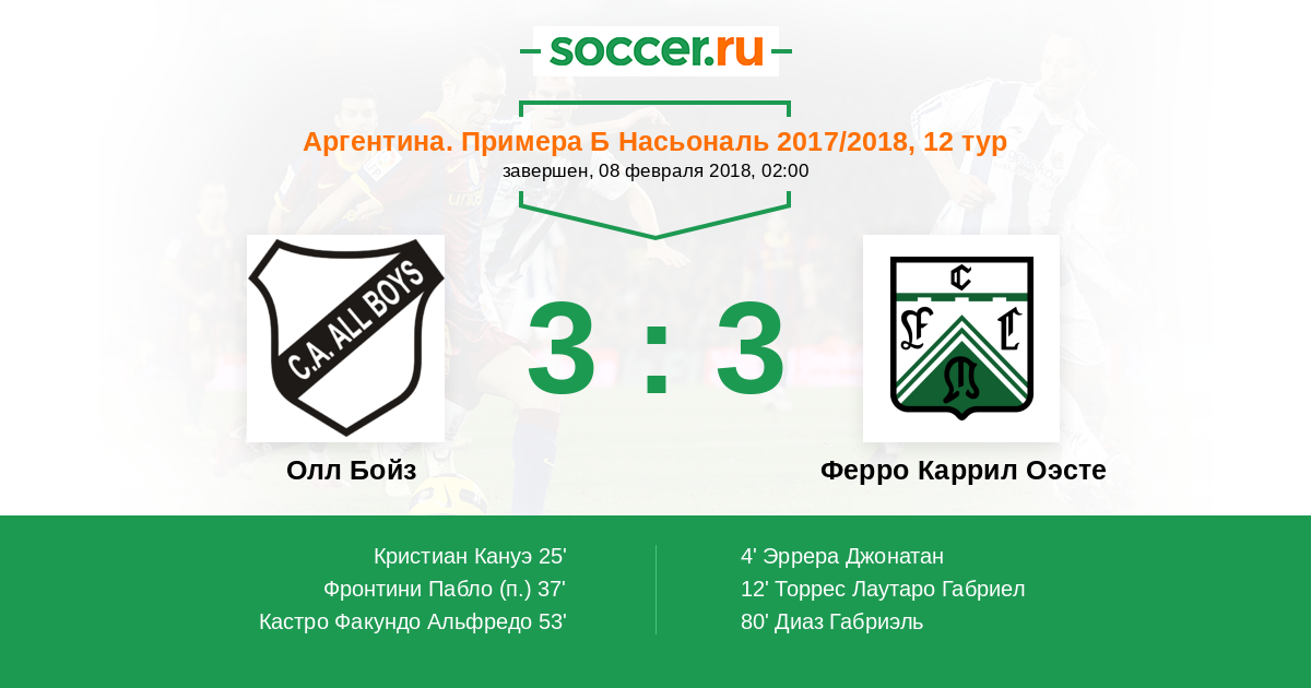 Олл Бойз - Ферро Каррил Оэсте: обзор матча 8 февраля 2018