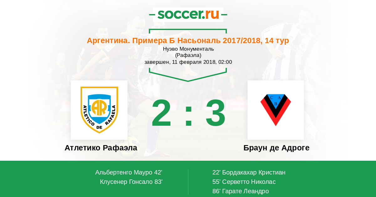 Атлетико Рафаэла - Браун де Адроге: обзор матча 11 февраля 2018