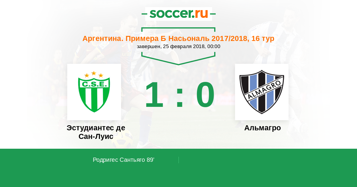 Эстудиантес де Сан-Луис - Альмагро: обзор матча 25 февраля 2018