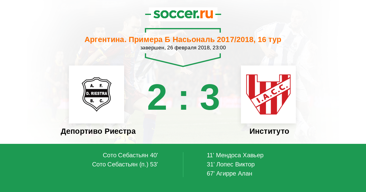 Депортиво Риестра - Институто: обзор матча 26 февраля 2018