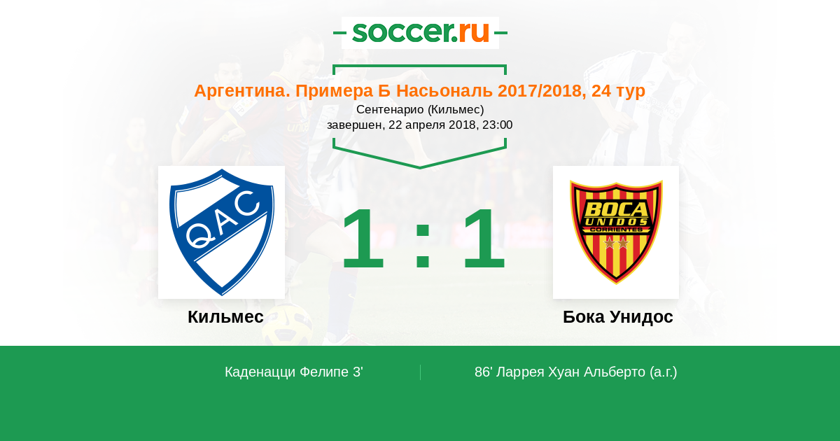 Кильмес - Бока Унидос: обзор матча 22 апреля 2018